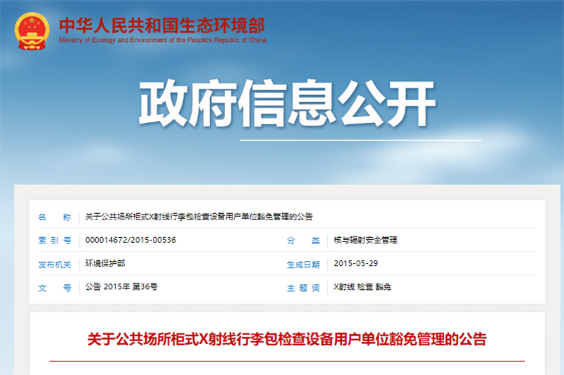 關于公共場所柜式X射線行李包檢查設備用戶單位豁免管理的公告