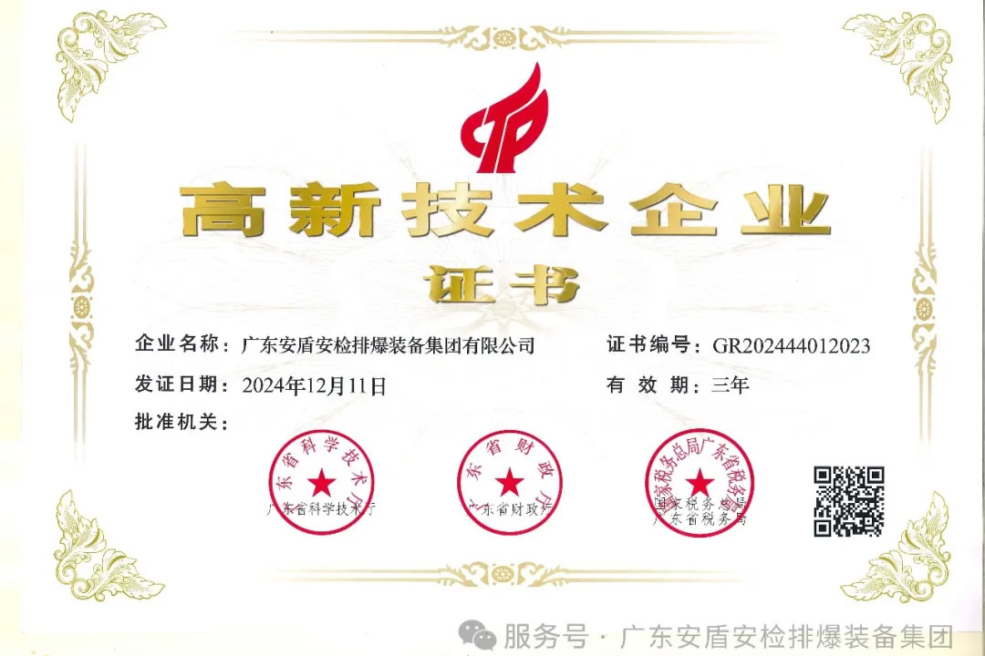 2025-08-05在安檢設備領域,廣東安盾安檢排爆裝備集團有限公司(以下簡稱“安盾安檢”)宛如一顆璀璨的明星,持續閃耀著創新與卓越的光芒。自2015年首次榮獲國家高新技術企業認定以來,直至2024年